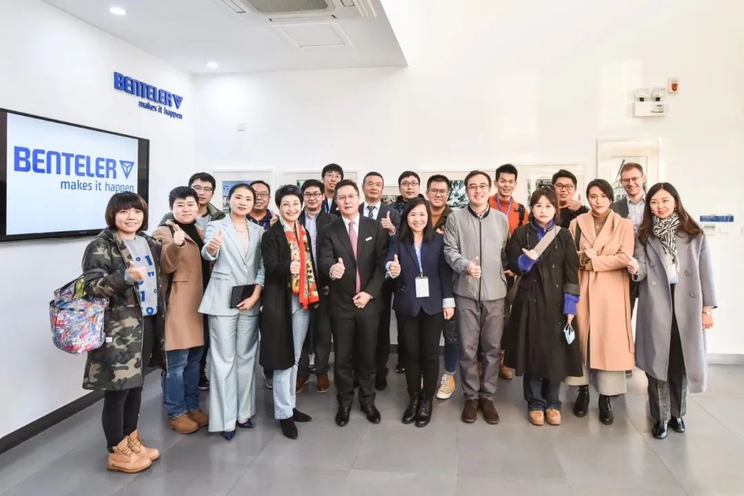 杨美虹(前排左四)走访宝马供应商本特勒公司